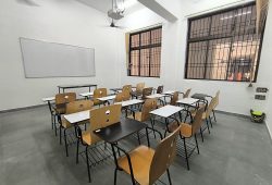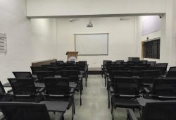 Classrooms are designed for interactive learning, enabling students to engage directly with professors. Equipped with audio-visual facilities, including BENQ projectors and speakers, to augment traditional teaching methods. Integration of technology like educational videos, online resources, and interactive software enhances learning experiences. Facilities include 4 furnished classrooms/tutorial rooms, equipped with whiteboards, noticeboards, air conditioning, and latest presentation tools. Integration of technology in traditional classrooms makes learning interesting. Availability of technology-based classrooms helps to render concepts through videos and other online resources. Institution classrooms are well equipped with adequate audio-visual facilities to help students. Our Classes and Seminar halls are fully furnished and air conditioned, with a capacity of 80-100 students.